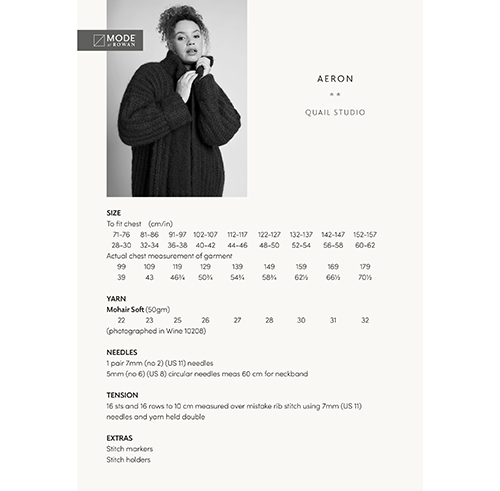 Long / full length cardigan, knit in mistake rib stitch, held double in mohair soft, simple shaping with turn back cuffs and stand up collar make this piece right on trend.