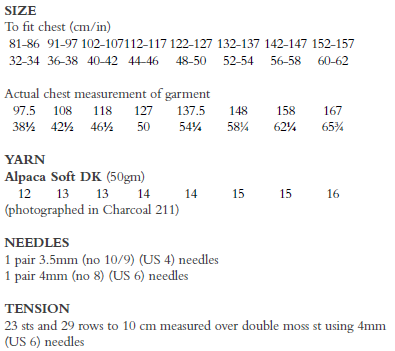 Chloe Thurlow has taken the classic crew-neck sweater and added a distinctive knit and purl texture. Purl stitch ridges are interspersed between deep bands of double moss stitch and trimmed with a simple rib. A great everyday layer for the cooler months.