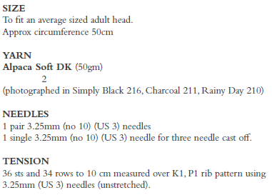 Warm, cosy and stylish, this ribbed beanie by Quail Studio is knitted using two balls of Alpaca Soft DK an essential winter accessory.