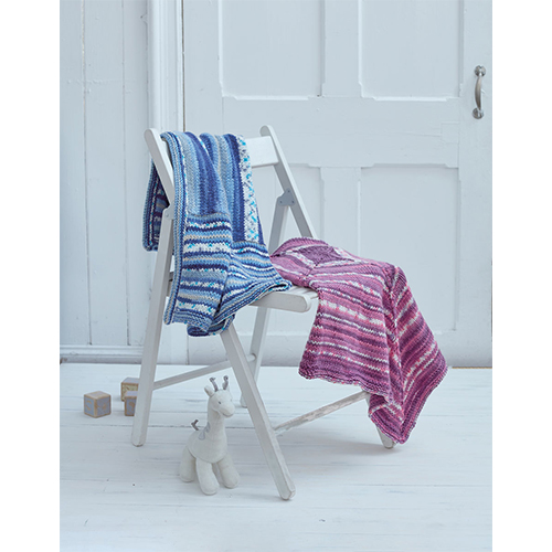 With two different construction styles, these blanket or afghans make the most of our self patterning Hayfield Baby Blossom double knitting yarn. Worked in stocking stitch with garter stitch trims, watch the yarn work its magic as you knit!