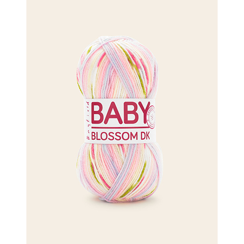 Baby Blossom DK is a pretty, self patterning yarn, available in a range of bright and pasten colours. Each of the gorgeous shades has a dainty flower print effect and stripe pattern that appears as you knit! As fun to knit with as it is to wear, this acrylic nylon blend is machine washable and ideal for little ones.