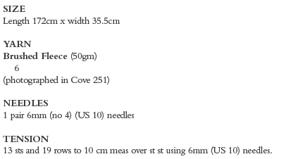 Wrap up against the colder weather with this textured scarf from Quail Studio. Knitted using chunky, yet lightweight Brushed Fleece, this cosy accessory with a cable detail and moss stitch border will keep the winter chills at bay.