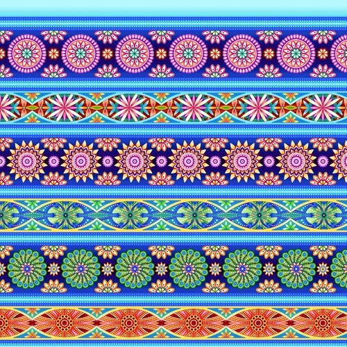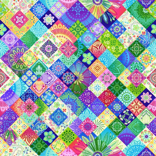 Caravan is a boho inspired collection that will have you embracing vibrant hues. Kaleidoscopes of colours swirl through these patterns that are filled with medallions. Stained glass inspired patterns are perfect for creating decorative pillows. Use the border stripe to create a statement chair cushion for your home office.