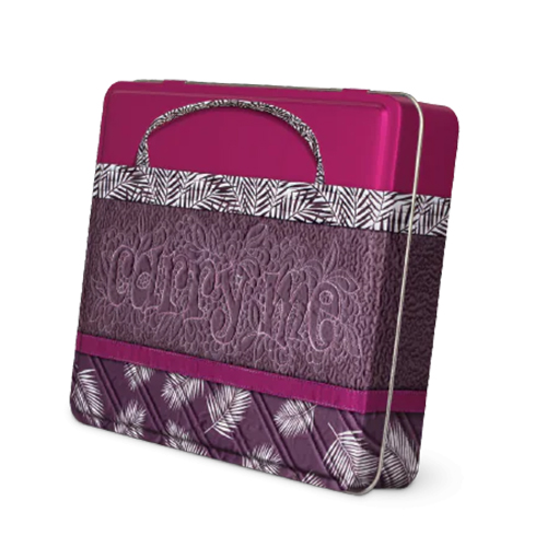 Storage Box in a stylish pocket-style with 12 spools Cotton 30 – 300 m in particularly beautiful multicolour shades, 5 universal sewing machine needles in size NM 80 from SCHMETZ and 3 cotton labels from Dortex.