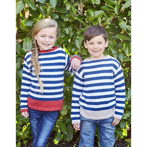 Colour blocking and stripes knitted in Sirdar Country Classic double knitting make these bold sweaters colourful, contemporary and cute on children from 3-7 years old.