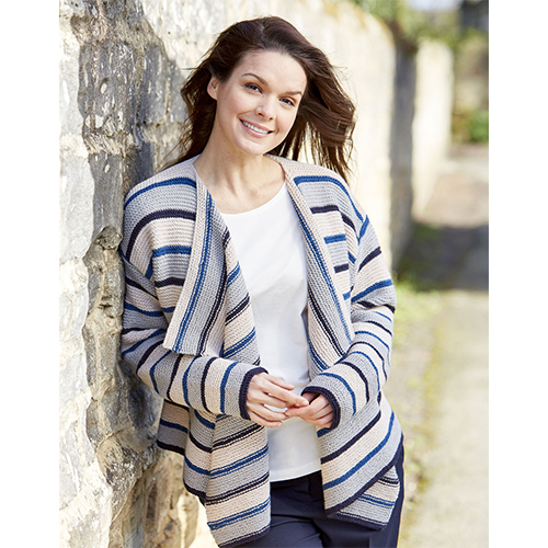 With its stripes and a waterfall opening, this cardigan creates geometric waves as you move. Knitted in garter stitch stripes throughout, the wide range of colours with instructions for sizes from Sirdar Country Classic make it ideal for this striped cropped cardigan.