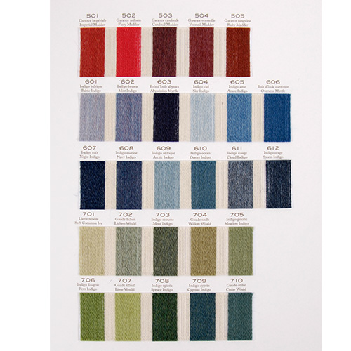 This 100% organic non–mulesed wool has been dyed using infusions of completely natural ingredients such as walnut, rhubarb, indigo and juniper. Its even thickness and gentle twist make it perfect for hand embroidery, cross stitching, punch needle, weaving and mending. Crewel wool thread is used as a single strand, and cannot be divided. It is approximately the same thickness as three strands of Mouliné Spécial.