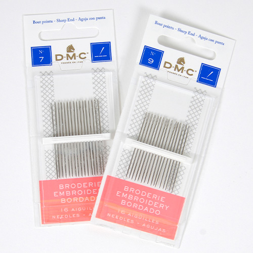 DMC Embroidery needles come in sizes 1-10, the smaller the number the larger the needle so a size 10 embroidery needle is the finest we sell. Size 7,5 and 3 embroidery needles are also known as crewel needles, deriving their name from a traditional style of embroidery that uses a fine 2-ply woollen thread.