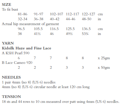 This beautifully soft, open lace cardigan is knitted with the luxurious Kidsilk Haze & Fine Lace held together and alternated throughout. With a wrapover style, and belted waist, this lightweight cardigan is designed to be both casual and elegantly flattering to the figure. This cardigan is designed by Lisa Richardson and also features long sleeves and rib finishing at the neckline.