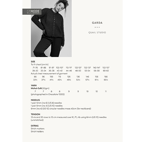 Garda is a rib stitch button down cardigan, with a crew neck and raglan shaping, the double faced button band adds structure. Knitted on chunky needles in a sumptous, rich brown from our new Mohair Soft yarn range, the soft halo effect given by the yarn lends a luxuriousness to this classic piece.