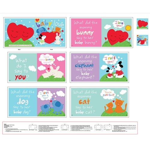 Sandra Magsamen is introducing six new books. Youre Purrfect To Me is a kitty book that we have not done as of yet. Im A Little Teapot is a classic song that kids can play along with. The Rainbow book is about colours and talks about hugs. Cock -a-doodle-doo and Kiss Kiss Little Fish each have multiple little add-ons including tails and fish fins. You Are My Sunshine features a monkey with its legs as the appendage that is to be sewn into the book. All of these new books will bring fun to the little one that is lucky enough to be the recipient.