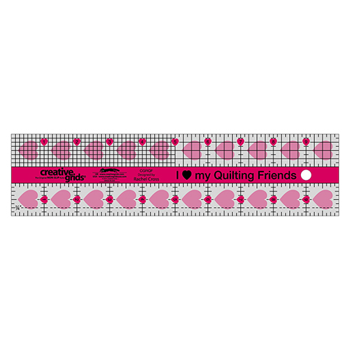 These rectangular ruler feature easy-to-read black and pink markings and there are three rulers in one. A 1/2 pink strip down the center of the ruler separates the ruler into two 1 sections. One side is printed in 1 grids marked in 1/8 inch and 1/4 inch increments with a 1/4 dashed line along the length of the ruler. The other side features a 1 segment printed with solid 1/8 solid grids and a 1 segment printed with 1/4 solid grids.
