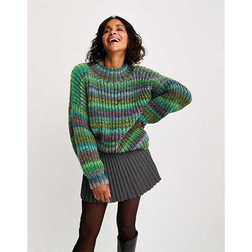Knit this Semi-Precious Sweater in cosy fisherman’s rib using Sirdar Jewelspun With Wool. The flattering wide neckline, modern oversize fit and deep two-by-two ribs make it easy to mix and match with all your smart-casual outfits. This intermediate knitting pattern is perfect for crafters with a little more experience.