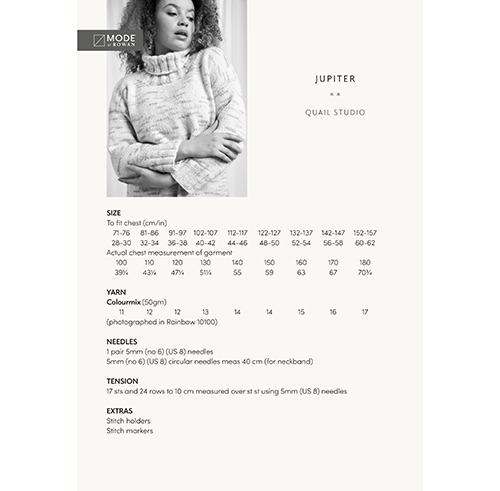 Jupiter A cosy, everyday sweater designed for comfort and ease. Jupiter features a soft roll neck and side-split hem, making it an ideal throw-on layer for cooler months. Knitted in Colourmix, our exciting new self-colouring yarn in Rainbow, it showcases subtle colour shifts and tonal depth, adding visual interest without the need for multiple yarns. A modern staple with a touch of playful texture.