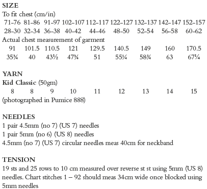 Sumptuous cables worked in Kid Classic, a beautiful lambswool and mohair blend, enhance the warmth and cosiness of this elegant sweater by Quail Studio. Cable patterns of varying complexity add interest to this winter staple.