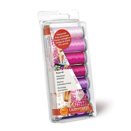 A set of 7 reels of 200m Gutermann Rayon 40 thread perfect for machine embroidery.These universal, high quality machine embroidery threads are available in several exciting shade assortments.