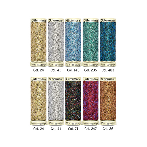 10 spools Metallic Effect Thread W 331 50 m in 8 different shades. The thread for twinkling and sparkling effects. For decorative seams and creative crafting ideas.