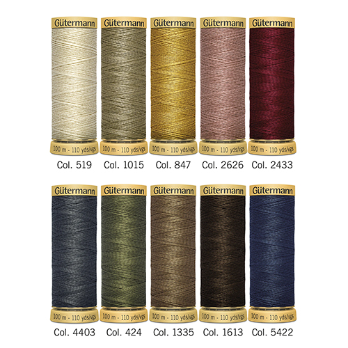 10 spools of high-quality, mercerized Cotton C Ne 50 for patchworking and quilting in a varity of colours. All cotton threads are made from premium quality Egyptian cotton.