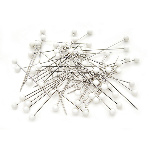 60 premium quality pins made from strong, durable nickel plated steel to prevent bending with black plastic heads for comfort. Packaged in a reusable glass jar with brushed gold lid.