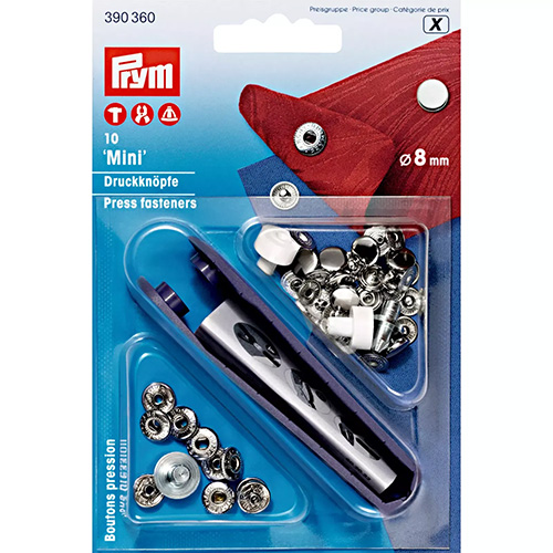 The silver-coloured press fasteners made of high quality stainless brass have an easy fastening strength, and with their 8 mm diameter are excellent for medium thickness fabrics such as jerseys and are also suitable for the decoration of clothing, purses, clutches and many more things. Tool Included