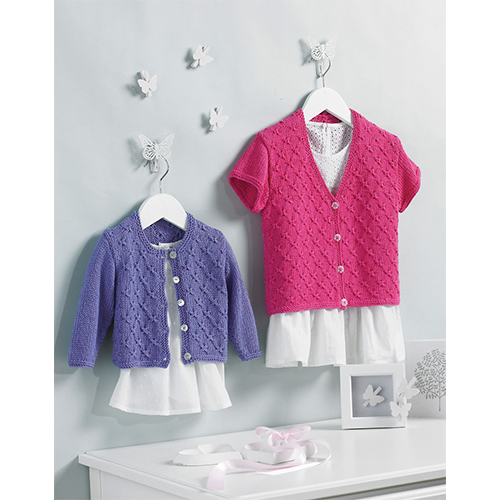 Girls round or V neck cardigan in an incredibly smooth yarn spun from natural bamboo and wool fibres for year-round comfort for your baby.