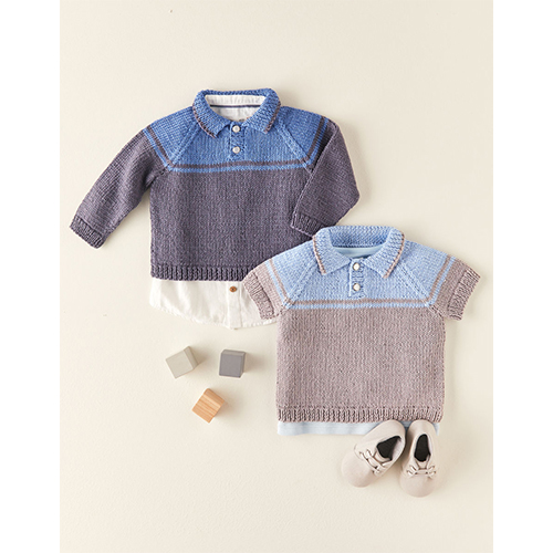Update their wardrobe with this classic Snuggly polo top. With a ribbed collar and front button placket, this colourblock design is a timeless hit. Knit with your choice of long or short sleeves.