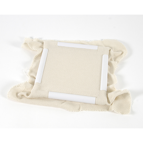 Made from whhite plastic, this frame is lighter weight than wooden scroll frames. It’s easy clip system makes it easy to set up as there’s no need to tack or lace your project to the frame before you begin working on your project.