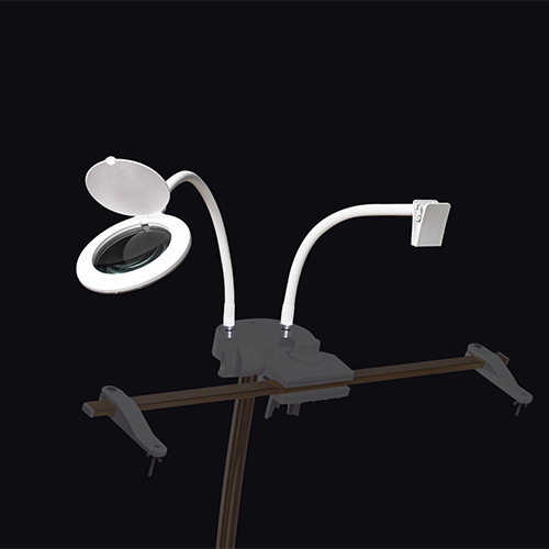 Enhance your StitchSmart 2 Stand™ with the optional Magnifier Lamp and Chartholder accessories. Both accessories attach and detach from the stand in seconds for convenient storage.