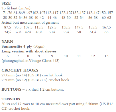 Kim Hargreaves signature details are instantly recognizable in this chic archive design. The flattering long length is gently nipped in at the waist and an intricate lace edging borders the button band and v-neck. This short sleeved summer cardigan is worked in Summerlite 4ply, a soft cotton with a lovely matt finish.