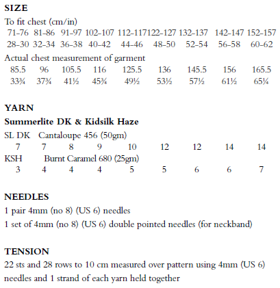 This carefree textured tee from Quail Studio is a great everyday knit for the warmer months. Knitted using Summerlite 4ply and Kidsilk Haze held together, creating a beautifully soft and interesting fabric for this relaxed summertime knit.