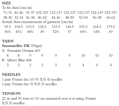 This classic design features a combination of thick and thin stocking stitch stripes. The classic sweater, from Quail Studio, is knitted using two shades of Summerlite DK. Dropped shoulders and rib details create a relaxed silhouette.