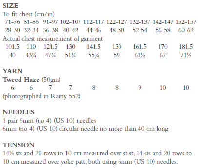 This simple, tunic-style sweater from Quail Studio is knitted using Tweed Haze. The stocking stitch body with elegant side vents, gently contrasts with a delicately textured yoke. An easygoing everyday sweater which youll return to again and again.